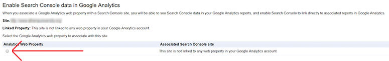 Once you click that you’ll come to this screen. Select the analytics property that you want to associate with this account.