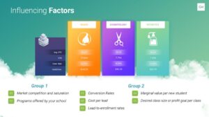So that is how all of these factors influence each other and balance each other out. Like I said, you have the relationship between marginal profit per enrollment, acceptable cost per lead, and your total budget.