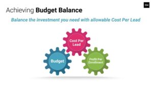 So now, you basically have the information that you need to find the right balance for your budget, right? You know that if you increase your budget, you’ll likely see a increase in cost per lead. But you know that that’s okay because you know how much each enrollment is worth and you’ve done the math to find out what your maximum allowable cost per lead is.