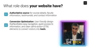 It’s really important that we do that. You have to have a well optimized for conversions website app user-friendly design. It facilitates easy navigation, quick access to information, a clear call to action, and other elements that convert visitors. People come from social media, from searches, from paid ads into leads. It doesn’t make sense to just have an information there and for them to not contact you. You want to make it as easy as possible for them to contact you because as I’m sure all of my admissions people would say that have been in there and all the admissions people, they would much rather work with too many leads than not enough leads. That’s the the way easier thing. You’re much closer to the dollar as Rob likes to say.