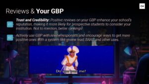 You talked about it, I just can’t stress enough how important Google Business Profiles. Anything to add to the Google Business Profile discussion, Pat? Like some pro-tips, what these schools can be doing better?